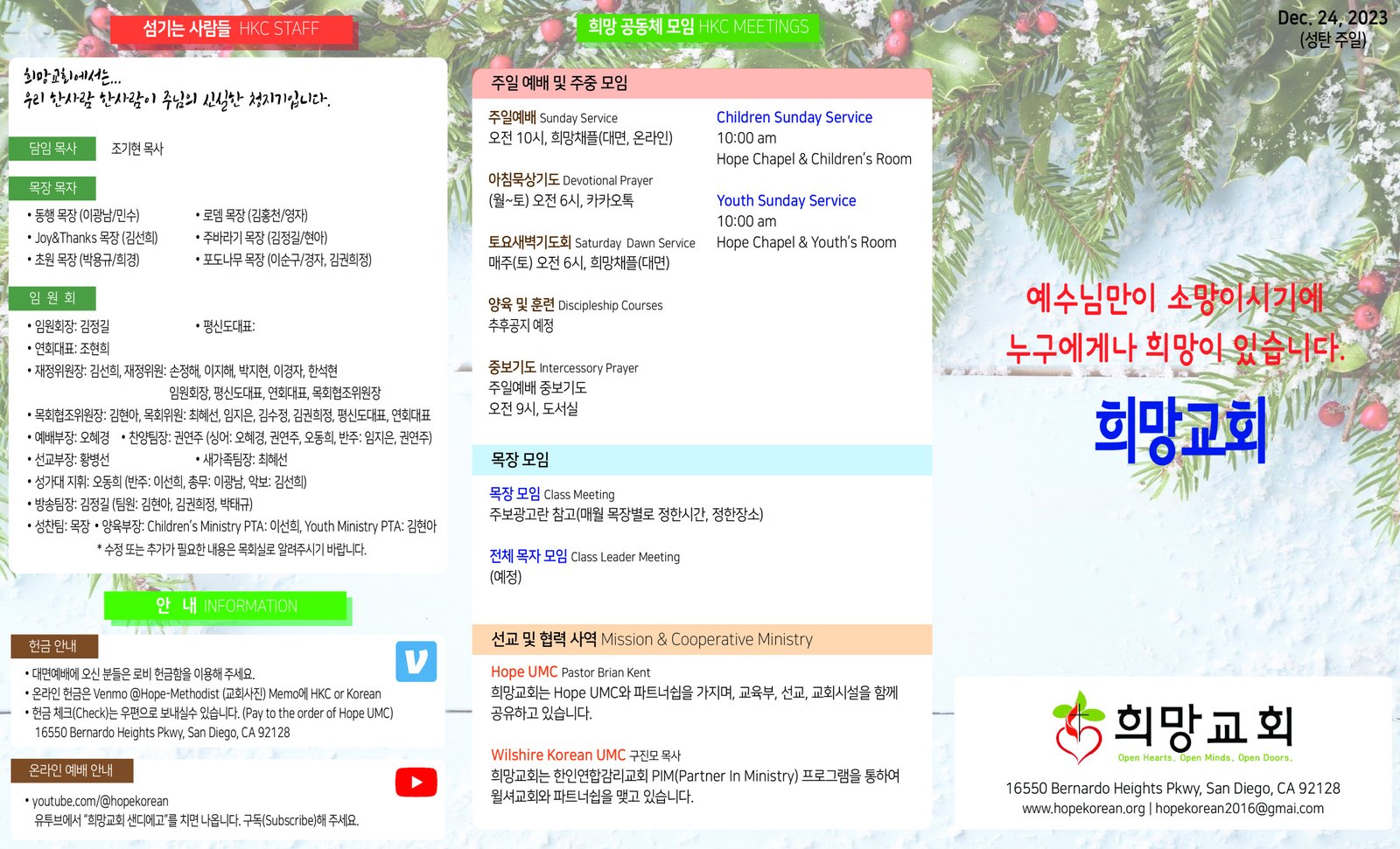 2023년 12월 24일 성탄주일 주보