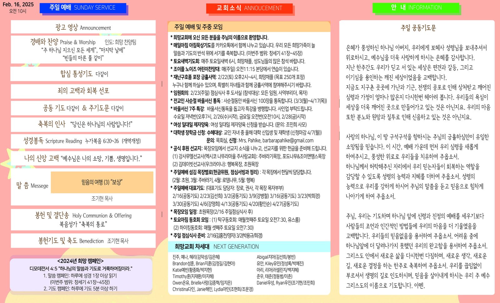 2025년 2월 16일 주보